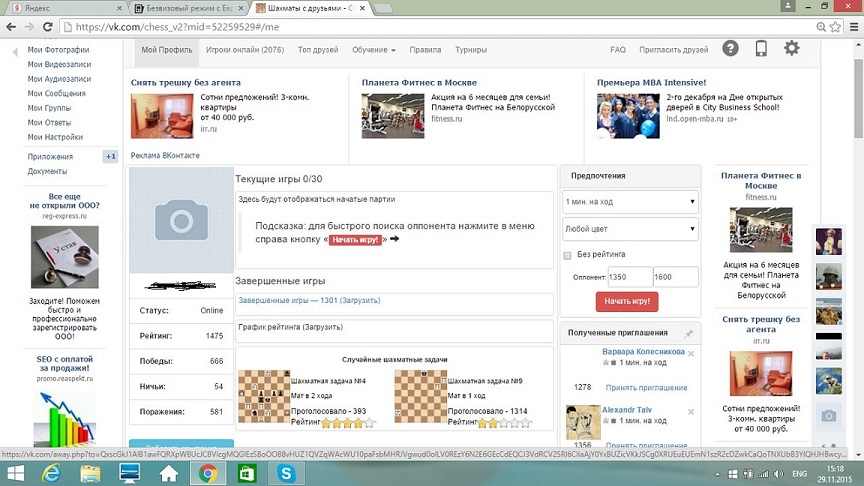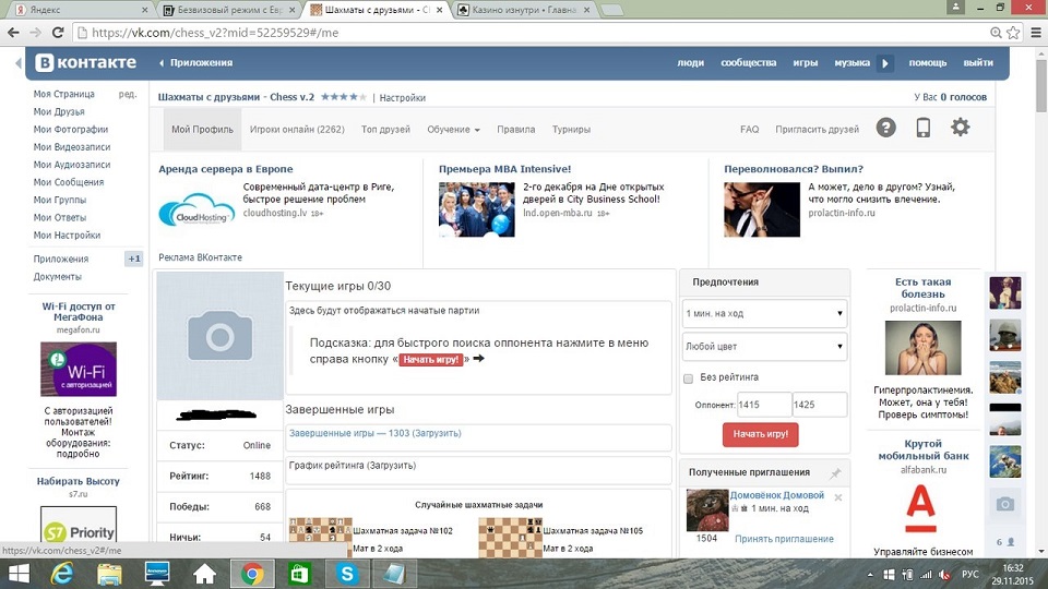Иногда в контактике забавляюсь игрой в шахматишки. Играю так себе, но тут практически одновременно два примечательных результата вышли. Спешу поделиться (похвастаться).