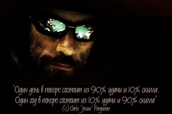 "Есть пару неплохих книг о покере, но большинство из них написаны университетскими профессорами или теми, кто играл в покер только на компьютере….Мне пришлось научиться использовать свои глаза и уши, и, парни, я могу увидеть комариную задницу за сто ярдов и услышать, как мышь мочится на ковер."