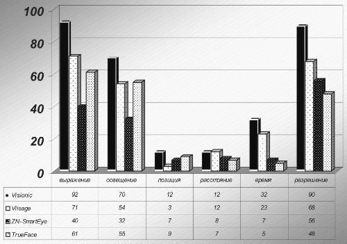 Рис.1. Сравнительный анализ эффективности распознавания лиц в разных системах