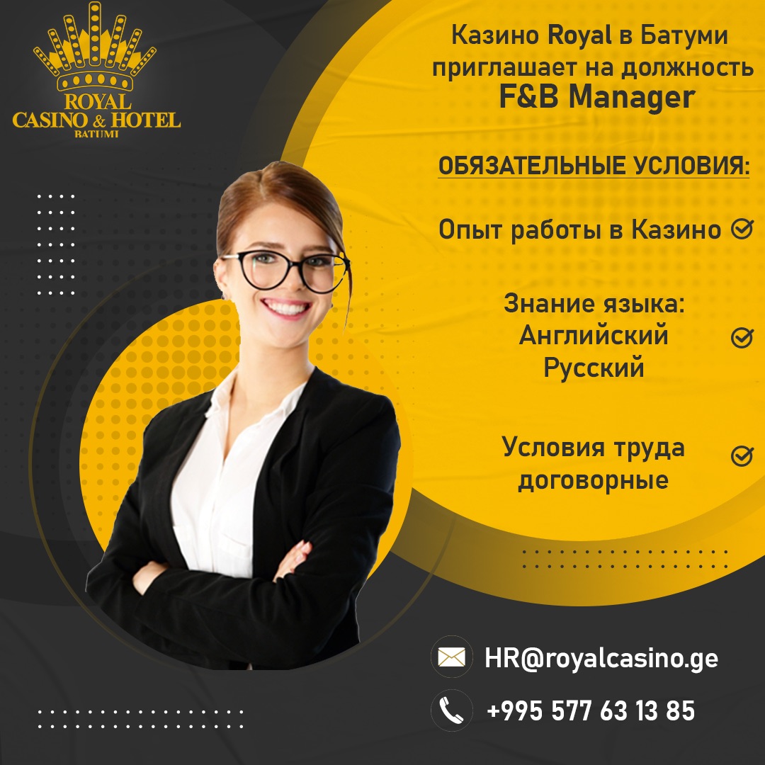 Royal Casino& Hotel открывает вакансии по следующим позициям: