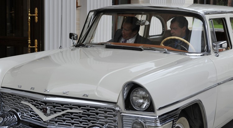 У Медведева такое выражение, будто он после первого свидания с девушкой, которую любил с детства и добивался с пеленок, и которая все таки соблаговолила один раз сходить с ним на вечер, подвез ее к дому. И вот теперь такая радость и счастье на его лице нарисованы, что даже радостно за него становится. Что еще нужно человеку, стать президентом и познакомиться с Арни...