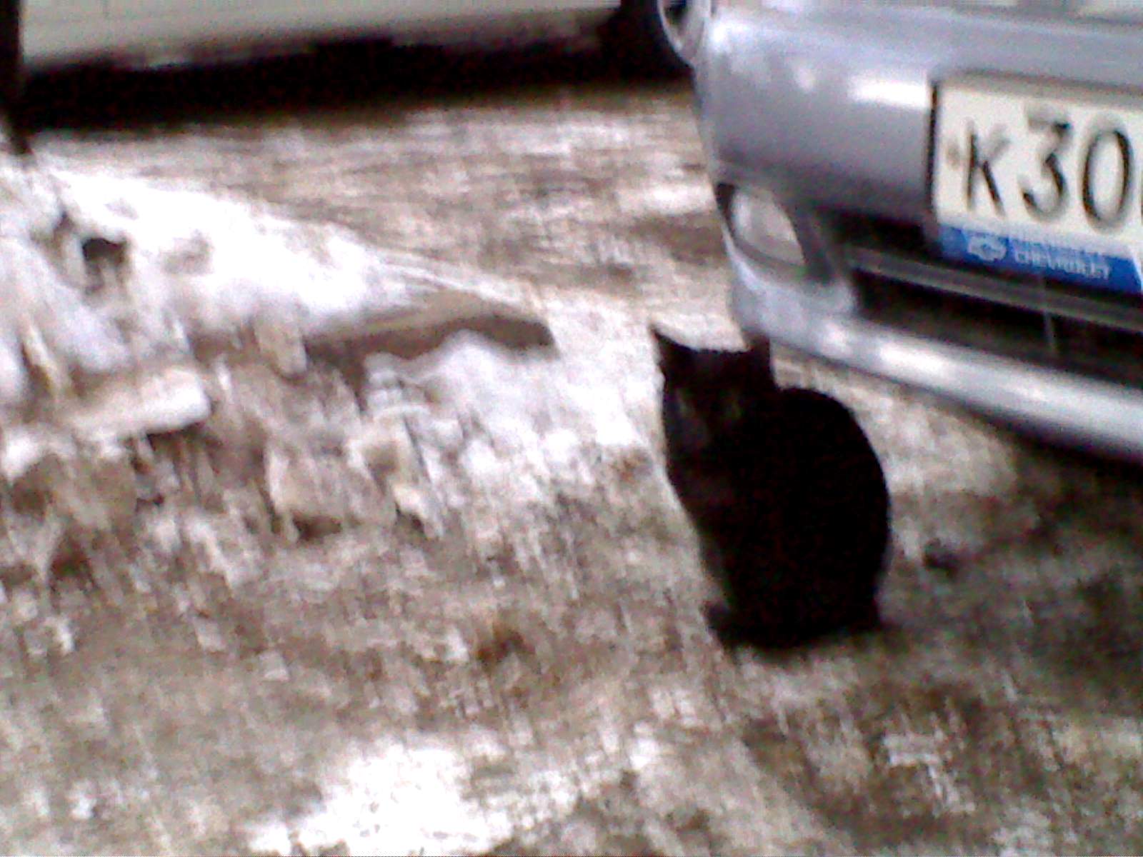 Сегодня встретил семейку: мама-кошка и 4 котенка=все похожи на маму один к одному.Пока фотопарат достал двое убежали.Вот все что успел сфоткать: