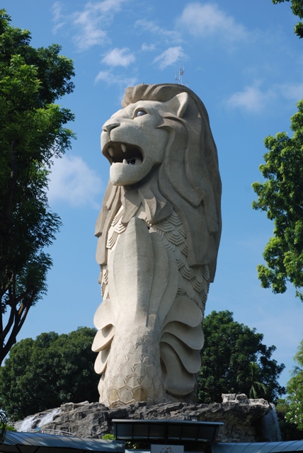 Мерлион - чудо зверь. Полу рыба, полу лев. Охраняет Сингапур от напастей и является его символом. Находится на Сентозе.