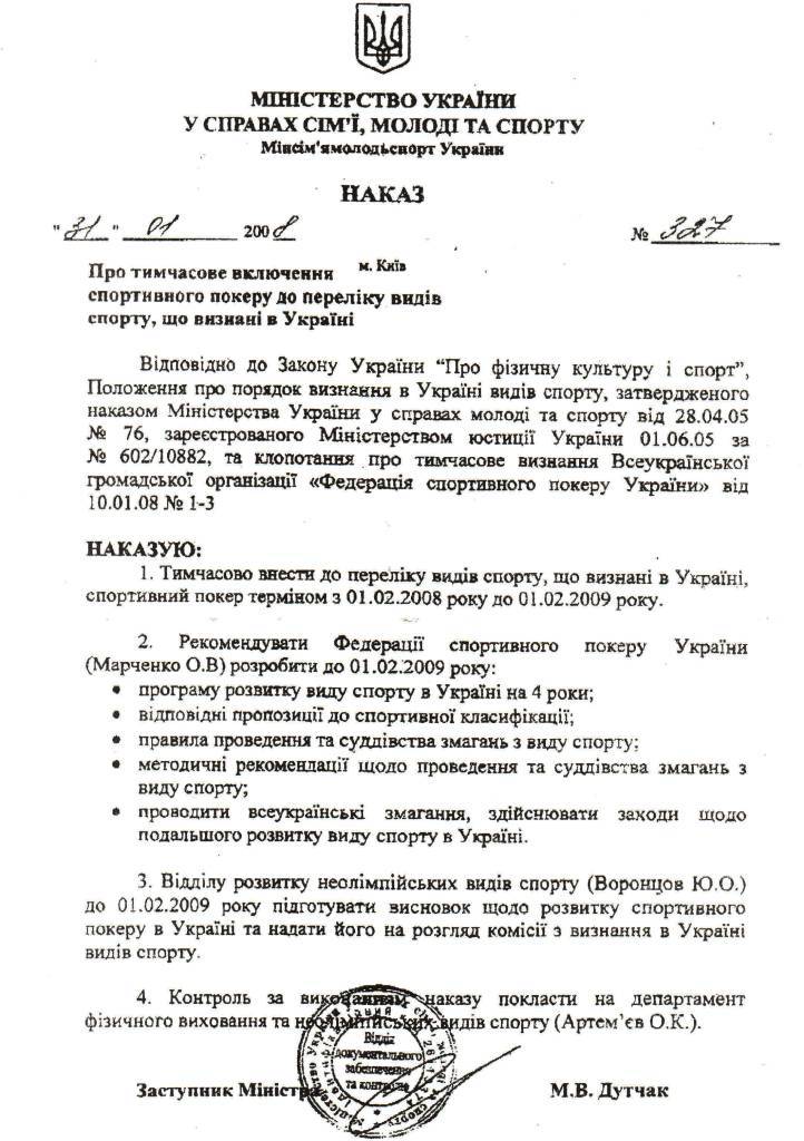 Если так, в Украине уже целый месяц, как покер официально признан видом спорта
