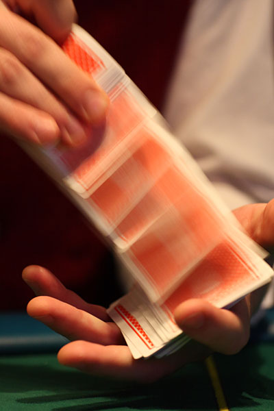 Нет:) Это только на камеру. Но, кстати, шафл у нас свой, немного нестандартный. После огромного количества эксперементов, дабы по максимуму избежать "слипание" карт и вероятность подмешивания. Это было связано, я как-то писал тебе на мыло, с нашей схемой раздачи карт на "казиношных" покерах - где дилер сначала раздает карты игрокам, а после того как они определились, выкладывает себе. Так и прижилось.