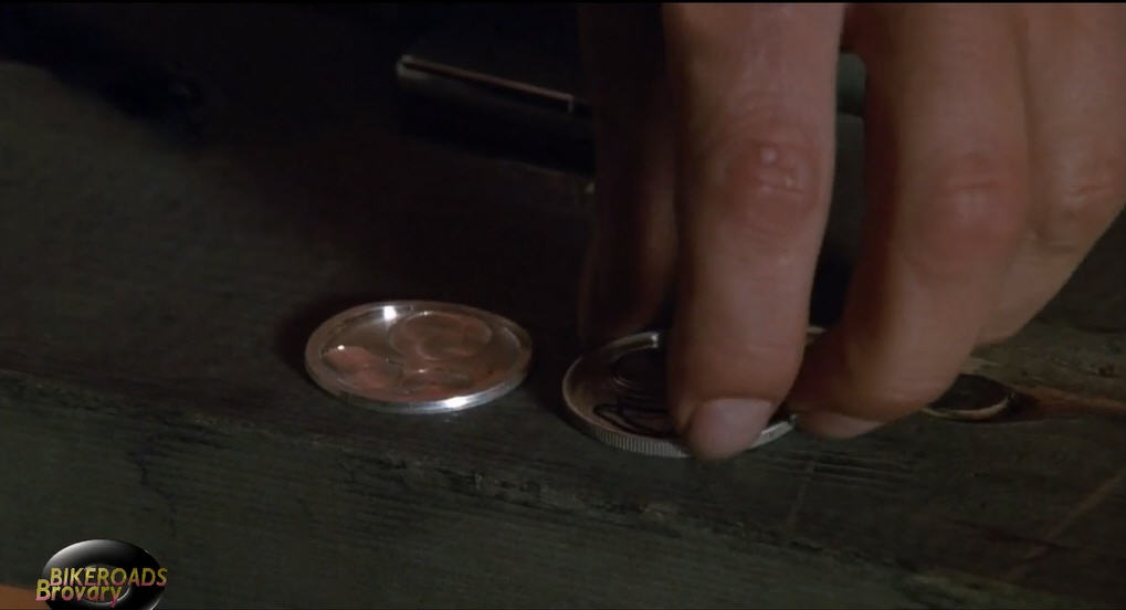 Единственное, что сразу вспомнилось - это заряженная радиомаяком монета в один доллар, из картины "Харлей Давидсон и ковбой Мальборо".