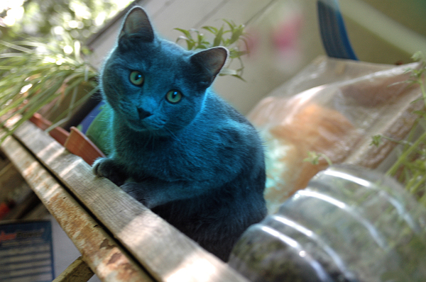Это порода такая -- Русская Голубая. ФШ- чуть-чуть, чтобы красоту приукрасить.