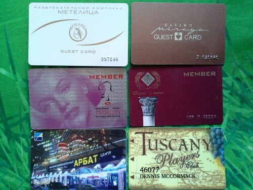 Предлагаю и Джокеры, и фишки, и карточки как-то лучше на обмен. Их цены не могу установить. Интересуют пластиковые карты российских казино с адресом или хотя бы с названием города. Фишки только А_Клуб и GR.